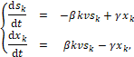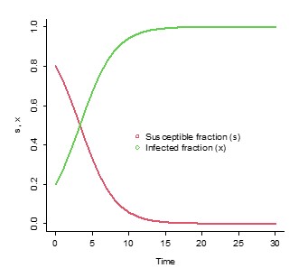 is proportional to the product of its fractions, that is, the rate of loss of the susceptible fraction is