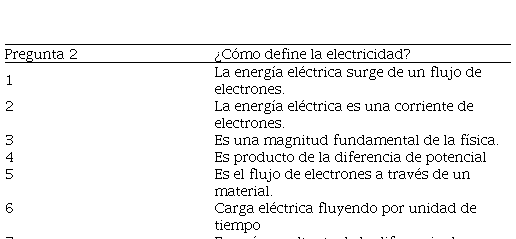 Visto de esta forma, la etiqueta de flujo de electrones tuvo un recuento de unidades mucho más grande y significativo que las otras unidades de etiqueta. Por otro lado, se pudo confirmar esta tendencia en la Fig. 4 donde en el gráfico de barras se obtuvo un porcentaje del 50% sobre flujo de electrones como respuesta a la pregunta, mientras el porcentaje restante se dispersa en las otras unidades de etiqueta.