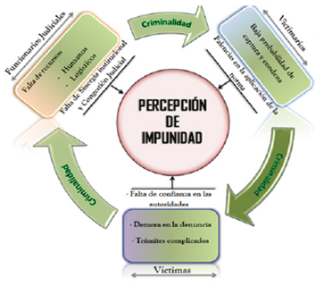 La impunidad o su percepción constituye una variable compleja que puede estar asociada a la generación directa o indirecta de criminalidad, convirtiéndose en uno de los aspectos más críticos para cualquier gobierno y su administración de justicia (Organización de las Naciones Unidas, 2012). Siguiendo a Barreto y Rivera (2009), delimitan el concepto de impunidad en la falta de castigo ante un delito, y señalan la dificultad para su definición debido a la ausencia de mediciones estructuradas del constructo "impunidad".