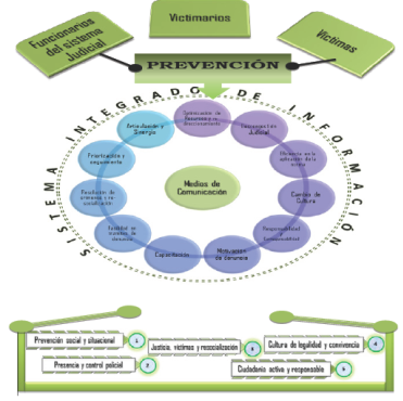 En suma, la estrategia debería dirigirse a robustecer dentro de un marco preventivo de la seguridad pública el sistema de justicia para una adecuada aplicación de la ley como variable principal, incluyendo el procedimiento, sanción y ejecución de la condena, que se encuentra atada a variables secundarias como la congestión judicial, falta de capacitación y limitación de recursos, que pueden ser administrados y potencializados de una mejor manera.