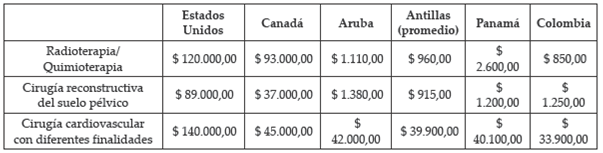 Estados Unidos es el país con mayor participación en los procedimientos mencionados, seguido de Panamá, que por los motivos ya mencionados en el tratamiento del cáncer se encuentra en segundo lugar, seguido de Canadá con una participación incipiente debido a las limitaciones antes mencionadas. Finalmente, Antillas y Aruba se encuentran en último lugar con una participación muy baja. Según Pacheco (2013), Estados Unidos se encuentra a la cabeza de los servicios demandados debido a la suma de varios factores.