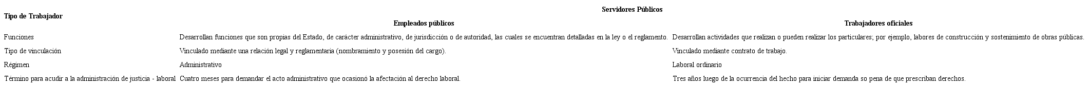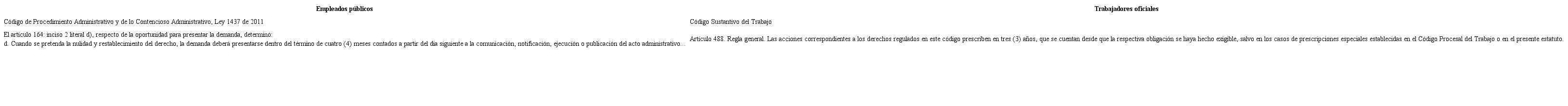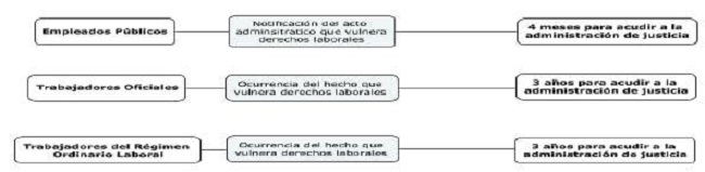 La siguiente tabla permite visualizar las principales diferencias procesales entre empleados públicos y trabajadores oficiales, específicamente en lo que respecta al término legal para reclamar sus derechos laborales.