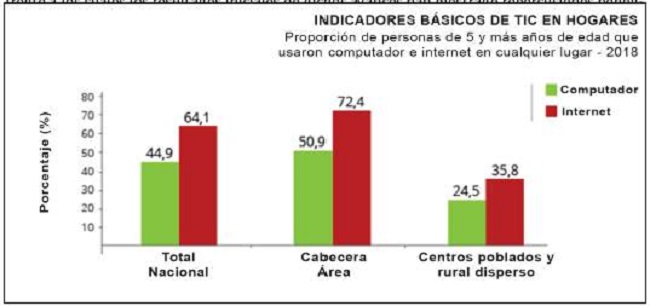 Según estadísticas del DANE, para 2018 más del 50.9 % de personas mayores de 5 años usó un computador y más del 72.4 % de la población anterior Internet. Con esta información podemos dilucidar que el campo de la tecnología se entrelaza desde temprana edad en la vida de los colombianos, siendo un eje importante para el desarrollo de todos los campos que rodean al ser humano, resaltando el campo el económico, político y aun el jurídico.