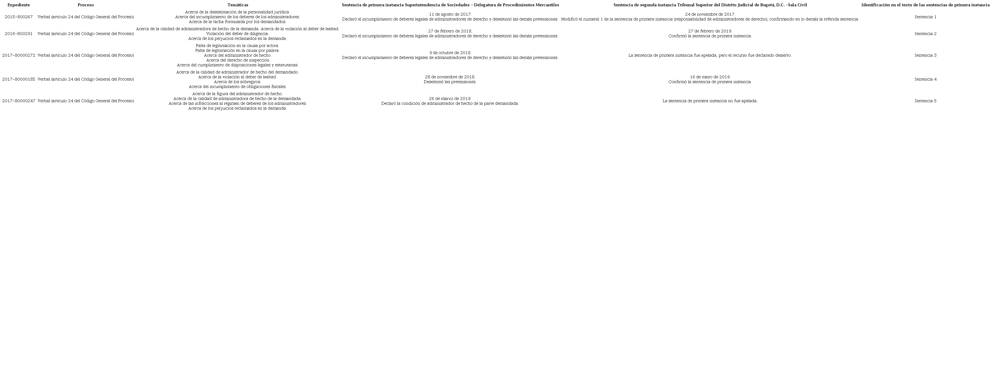 Ahora bien, debe ponerse de presente que, en los casos analizados, la Superintendencia de Sociedades, sin perjuicio del recurso a sus propios pronunciamientos en vía administrativa18, así como a su jurisprudencia, ha recurrido a la doctrina nacional y extrajera, herramientas utilizadas en los casos concretos, lo que le ha permitido construir pautas para identificar una persona en condición de administrador de hecho en sociedades por acciones simplificadas, las cuales se han ido consolidando caso tras caso. A continuación, se presentan los fallos analizados19: