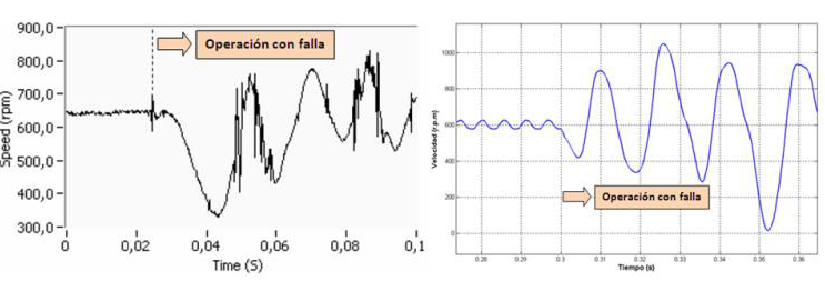 La Figura 8 muestra la respuesta de velocidad de la MSIP. La oscilación pulsante de la velocidad en estado estable durante falla es debida a la naturaleza pulsante que presenta la onda en el entrehierro de la máquina durante la apertura de la fase.