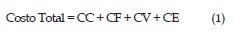 Entonces, el Costo Total se puede expresar como se muestra en la ecuación (1):