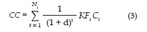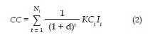 La ecuación (2) establece que el costo de capital de un sistema de energía renovable durante la vida útil es igual al producto del costo unitario de capital KCt ($ / MW) y la capacidad instalada It (MW) en el año t-ésimo, donde d representa la tasa de descuento del valor del dinero, en el tiempo.