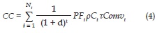 Donde CC, CF, CV y CE son los costos de capital, fijos, variables y los externos, respectivamente, sobre la base de la estructura de costos del modelo energético desarrollado.