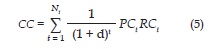 En la ecuación (4), el costo variable es el costo del combustible adquirido para operar el sistema de energía renovable, el cual es cero con excepción de la energía de biomasa; PFt ($ / Tep) representa el precio del combustible, es la relación de conversión de pies a MWh que es igual a 4,55 suponiendo un 39 % de eficiencia de conversión térmica eléctrica, y es el costo variable de operación y mantenimiento, que corresponden a los mantenimientos correctivos y costos de operación no programados (factor que no es considerado en el modelo inicial y se propone como aporte de este trabajo). El factor de capacidad representa la fracción de salida real (MWh) durante la producción máxima que puede obtenerse en un período de tiempo.