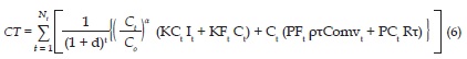 Al sustituir los factores de costo de las ecuaciones (2) a (5) en la ecuación (1) se puede evaluar el costo total de un sistema de energía renovable particular durante un período de tiempo. El modelo propuesto no refleja las perspectivas de los costos en el futuro, ya que los parámetros de costos, tales como KFt y KCt, se presentan como constantes tomadas de los datos disponibles en la actualidad, al no disponer de series de tiempo que proporcionen información suficiente. Adicionalmente, todo modelo económico debe considerar la incertidumbre en las condiciones futuras de las variables externas como PFt y el PCt [9].