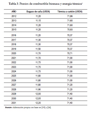 Como se puede apreciar en la tabla 5, la energía térmica no presenta cambio alguno en su capacidad instalada durante el periodo de estudio. El escenario 3 se proyecta como una opción altamente factible, e incluso más rentable que el 2, por la menor utilización de biomasa, teniendo la ventaja de conservar los beneficios ambientales.