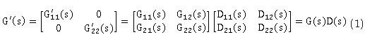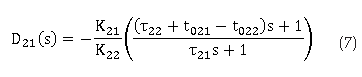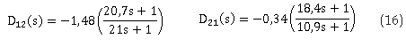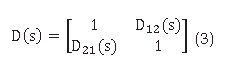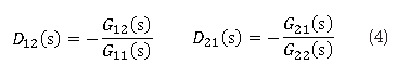 De manera similar para los desacopladores DTM se calculan D12(s) y D21(s) usando las ecuaciones (6) y (7):