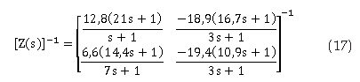 La matriz de desacoplamiento por alimentación adelantada Z-1(s) para los DAA se calcula usando las ecuaciones (10) y (11):