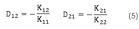 Para los desacopladores DGE los términos D12 y D21 de la matriz de desacoplamiento usando la ecuación (5) queda como: