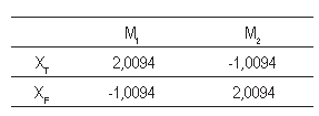 La Tabla 1 muestra los valores obtenidos para la MGR. Se observa como el sistema presenta alto índice de interacción entre las variables. Según la MGR los mejores pares de variables manipuladas-controladas corresponden a (M1,XT) y (M2,XF), es decir, con la entrada M1 controlar el producto de tope y con la entrada M2 el producto de fondo de la columna de destilación.
