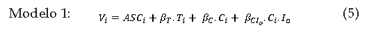 Donde es el coeficiente estimado del costo, Pni es la probabilidad de que el individuo n decida realizar su viaje en el modo i y