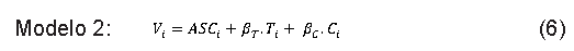 Como se observa en la formulación, el modelo 1 considera la interacción con el ingreso en dos categorías, lo que permite obtener una valoración económica del tiempo para distintos tipos de usuario. Del mismo modo, obtener elasticidades asociadas a cada categoría de ingreso, lo cual brinda la posibilidad de establecer políticas tarifarias acordes a la condición socioeconómica de los individuos de la zona.