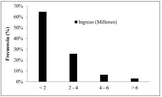 Las encuestas definitivas se aplicaron en el centro y norte de la ciudad de Montería en noviembre de 2014 a un total de 172 individuos que poseían auto, para un total de 1.548 observaciones debido al panel de datos. La edad promedio de los encuestados fue de 42 años, siendo el 82% hombres. La ocupación de los individuos encuestados se distribuyó así: 44% empleados, 46% independientes, 8% jubilados, 2% estudiantes y 1% desempleados. La distribución del ingreso indicó que la mayoría devengaban menos de $2 millones mensuales, tal como se ve en la Fig. 1.