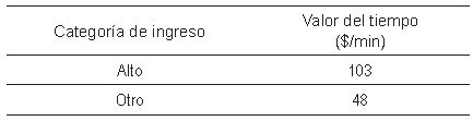 Finalmente se encontró que el valor del tiempo para los individuos de alto ingreso fue de 103 $/min, en tanto que para los demás individuos su valoración dio 48 $/min. Estos resultados apuntan en el mismo sentido de la teoría microeconómica, que puede ser utilizado en evaluación de los proyectos de transporte, particularmente en el análisis beneficio-costo de proyectos de infraestructura y en la modelación de transporte público.