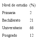 El nivel de estudios de los encuestados fue predominante en personas con estudios universitario (66%), tal como se detalla en la Tabla 2.