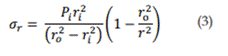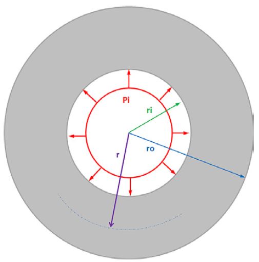 También es posible deducir de la presente investigación que el esfuerzo radial (σr) es independiente del radio interno. Este esfuerzo siempre corresponderá a la presión interna en ri (inside radius) ycero (0) en ro (outside radius).