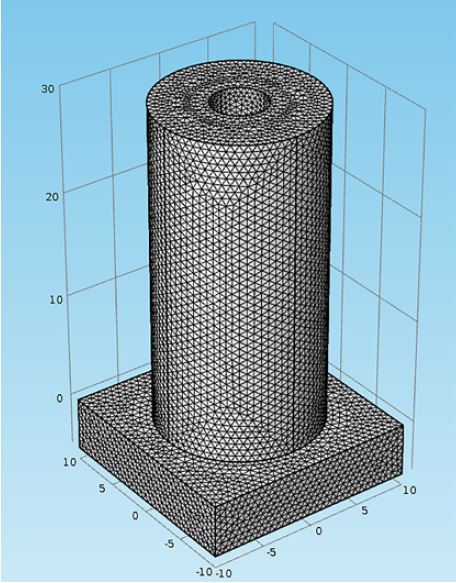 Un modelo cilíndrico tridimensional del cilindro de concreto se construye mediante el uso de la herramienta Comsol, tal como se muestra en la Fig. 1.