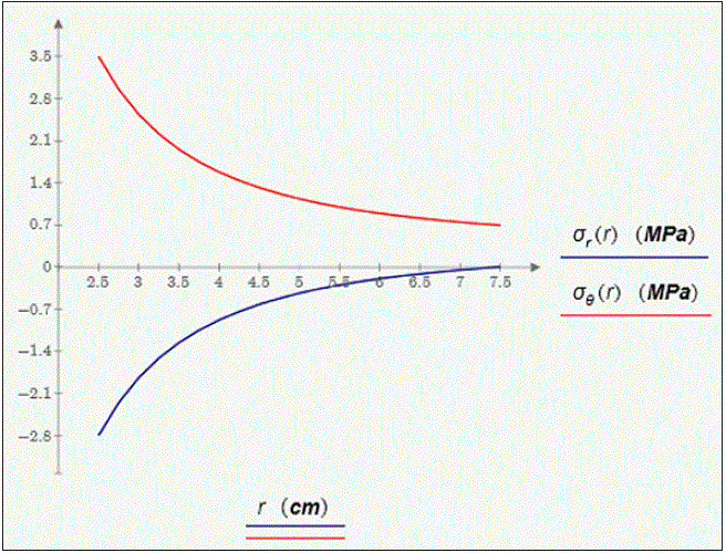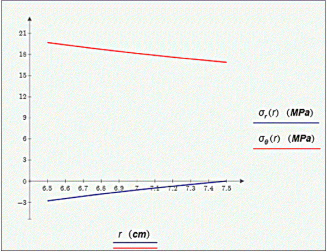 Mediante los datos obtenidos en la investigación se pudo notar que la diferencia de σθi y σθo da como resultado el mismo valor que σri. Se realizaron otras pruebas en las que se calculaba el valor de σθ en un radio entre el radio interno y el radio externo. Lo anterior arroja como resultado que al obtener su diferencia con el σθo este da igual al valor de σr hallado en el mismo punto. Con esto podemos decir que la variación en el esfuerzo tangencial es igual a la variación en el esfuerzo radial. Dado lo anterior, se puede hacer una ecuación para relacionar estos dos valores (ecuación 7).