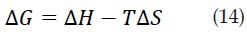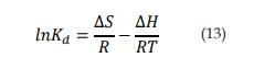 Donde Kd = qe/Ce , T es la temperatura en Kelvin y R es la constante de gases. El cambio en la energía libre de Gibbs se calcula por medio de la ecuación 14 o bien con la 15 [3].