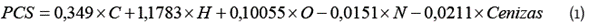 El poder calorífico superior (PCS) de los plásticos se calculó a partir de la correlación derivada por Channiwala y Parikh [23]. Para ello se usaron los resultados de los análisis próximo y último de acuerdo con (1), donde el PCS se encuentra en Mj/kg y C, H, O, N, S y Ceniza hacen referencia al porcentaje másico del carbono, hidrógeno, oxígeno, nitrógeno y cenizas (respectivamente) en base seca.