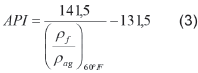 La gravedad API se determinó acorde a la norma ASTM D 1298-12b, tomando como densidad del agua (pag) 0,996016 g/cm3. Debido a que la temperatura de análisis es 25 °C (77°F) y normalmente se expresa el grado api a condiciones estándar (15 °C o 60 °F) se emplea un factor de corrección para obtener el grado API estándar (3).