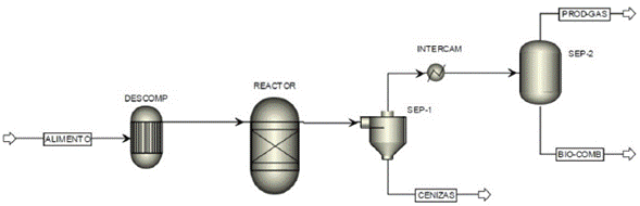 Para tal fin, uno de los software o paquetes computacionales más frecuentemente utilizado es el software Aspen Plus. Peters y colaboradores [13] utilizaron un modelo en Aspen Plus para simular la pirólisis de materiales lignocelulósicos, basados en la cinética de las principales reacciones involucradas. El modelo les permitió analizar el efecto de diferentes parámetros de operación sobre la cantidad y calidad de los productos, además de predecir la composición de los productos líquidos obtenidos. La validación de sus modelos la realizaron a partir de reportes de la literatura. Suárez y colaboradores [14] simularon la obtención de un gas de síntesis útil para la obtención de biocombustibles, también a partir de material lignocelulósico y en Aspen Plus, pero en este caso los autores emplearon una aproximación a través de equilibrios termodinámicos para simular el proceso de gasificación. Otros autores han reportado modelos similares en Aspen plus para estudiar la pirólisis de llantas usadas, llegando a predecir mediante estos la formación de más de 110 productos de interés dependiendo de las condiciones de operación [15]. También se ha reportado el uso del software Aspen plus en la simulación de la pirólisis de desechos municipales para obtener biocombustibles, biochar y gas de síntesis [16], validando los modelos mediante la comparación de resultados simulados y datos experimentales. Estos autores posteriormente utilizaron sus modelos para determinar condiciones de operación que permiten optimizar la producción de biocombustibles a partir de dichos residuos.