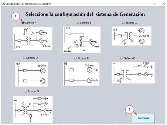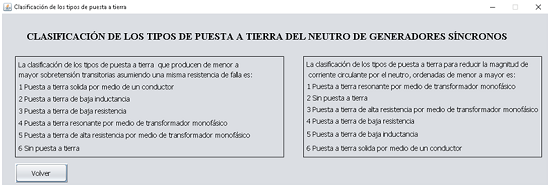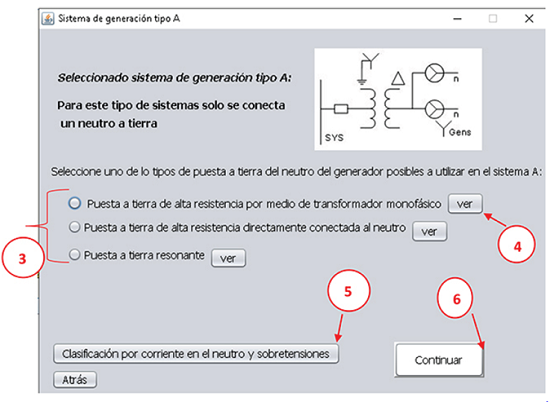 La siguiente ventana a la de inicio es mostrada con la figura 7, donde se puede selec cionar el tipo de puesta a tierra a utilizar como sigue: