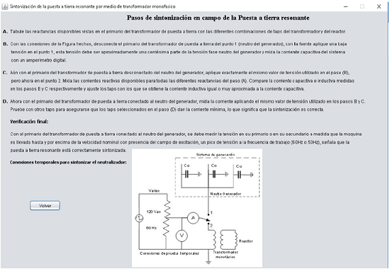 Finalmente, una vez especificados todos los elementos de la puesta a tierra resonante en la misma figura 14, aparece el botón “Guía de sintonización en campo”, el cual abre la ventana de la figura 16 que muestra el texto de consulta para sintonización en campo de la puesta a tierra resonante.