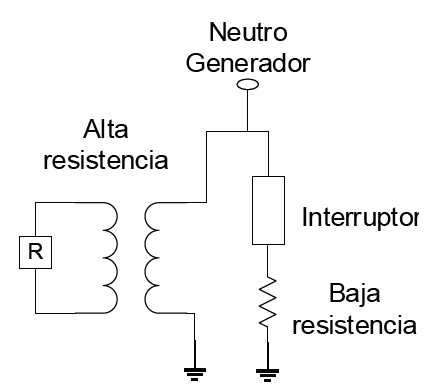 Estos tipos de puesta a tierra se conocen como de alta impedancia y su principal función es disminuir la magnitud de la corriente, de cortocircuito a tierra, a valores seguros para el devanado del inducido. Sin embargo, son las que tienen mayor riesgo de sobretensiones temporales y transitorias [1] y [3].