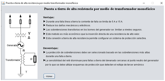 Este método presenta dos opciones de PTN del generador, por baja resistencia y por alta resistencia, utilizando un transformador monofásico.