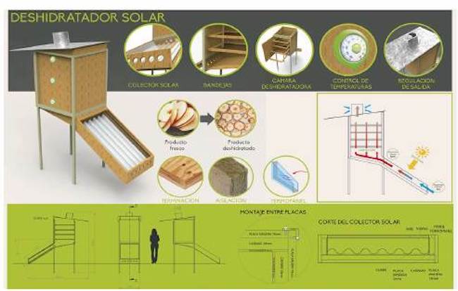 La principal desventaja de estos equipos es la demanda de materiales contaminantes y el uso de energía eléctrica para su funcionamiento. Al considerar los objetivos de nuestra investigación se ha seleccionado un equipo deshidratador de bajo costo que utilice energías renovables para su funcionamiento. El deshidratador con energía solar es propicio para frutas y verduras, con un rendimiento superior a una tonelada por día de producto, dependiendo de la selección del equipo [10].