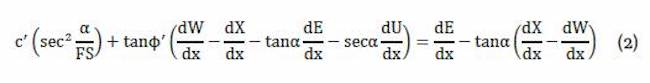 Donde σn es la tensión normal en el centro de la base de una dovela y FS es el factor de seguridad definido como el factor para el cual los parámetros de resistencia al corte deben reducirse a fin de llevar la masa de suelo a un estado de equilibrio límite a lo largo de la superficie de deslizamiento supuesta. Los restantes parámetros se obtienen a partir de la aplicación de la envolvente de falla extendida de Morh-Coulomb.