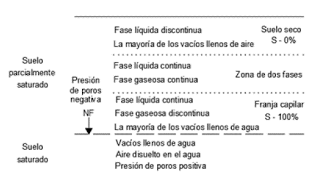 En términos generales, puede afirmarse que cualquier obra construida por el hombre está soportada por el suelo o roca de la corteza terrestre [1]. El estudio del comportamiento geotécnico de los suelos se ha desarrollado en consideración a que los suelos se encuentran saturados o secos [2]. Los suelos parcialmente saturados se encuentran sobre el nivel freático y pueden llegar incluso a estar secos en zonas cercanas a la superficie, tal como se muestra en la figura 1.