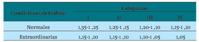 A partir de lo planteado por Armas [10], [11] se presenta la tabla 1, en la que se resumen los valores de factor de seguridad en función de las condiciones de trabajo y de la categoría de la presa.