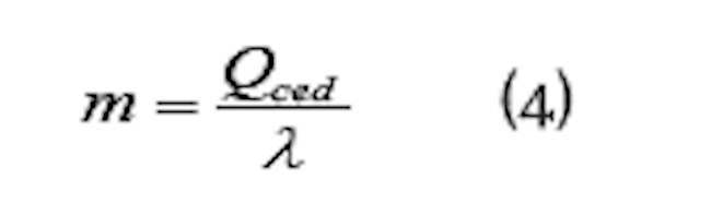 Se trabajó con base de cálculo para 1 h de trabajo, por lo que el flujo másico de vapor (Qm) es igual a la masa del vapor en kg/h.