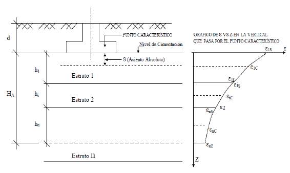 •εic : variación de la deformación unitaria vertical en un punto del centro del estrato (i) calculado en una vertical que pase por el punto característico del cimiento en el que se calculará el asiento absoluto.
