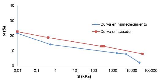 A fin de determinar la succión se tomó como base la norma ASTM de obtención de la succión en el laboratorio [19]. Los resultados experimentales de las succiones de las muestras de suelo empleado en la investigación se presentan en la figura 3. El ensayo de succión se realizó empleando papel de filtro Whatman 42.