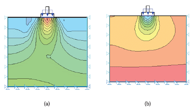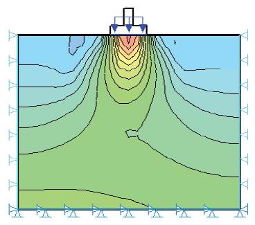 En la figura 7 se muestra la distribución de tensiones debida a la carga impuesta que se produce en el suelo al incorporar la curva característica obtenida mediante los ensayos de laboratorio.