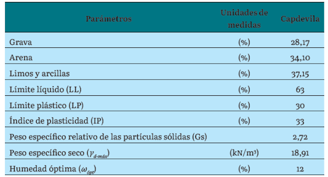 Los resultados de la granulometría, de los límites de consistencia y del peso específico relativo de las partículas sólidas de las muestras de suelo objeto de estudio se presentan en la tabla 1.