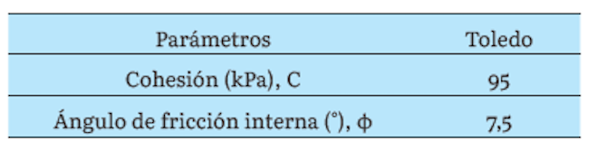 El muestreo se realizó de acuerdo con un procedimiento aleatorio en el sitio geológico de la formación Toledo. Las muestras se extrajeron sin alterar, de acuerdo con la normativa correspondiente. Después de realizar cinco ciclos de pruebas de laboratorio, se determinaron los valores promedio de las propiedades y los parámetros para cada suelo estudiado.