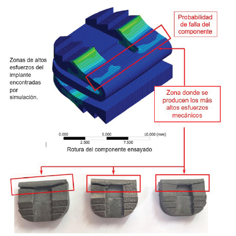 Con los resultados iniciales se procedió a realizar una mejora del diseño en las zonas críticas del implante (análisis de la zona de falla), a través de elementos finitos, a pesar de que la falla estaba relacionada, básicamente, con el proceso de fabricación.