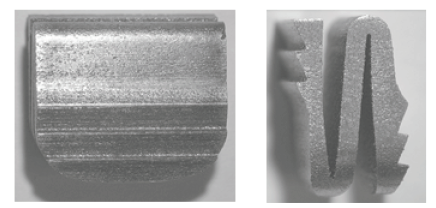 La figura 8 muestra uno de los prototipos fabricado mediante SLM sin la presencia del canal portaimplante. Una vez fabricados los prototipos mediante impresión 3D fueron sometidos a un tratamiento de prensado isostático en caliente (hot isostatic pressing o HIP, por sus siglas en inglés), que emplea alta presión por un gas inerte (usualmente argón) a fin de mejorar las propiedades del material. El tiempo y la presión a elevada temperatura permite que se produzcan deformaciones plásticas, fluencia y difusión al interior del componente, con la consiguiente mejora de las características y propiedades (en especial a la fatiga, a través de la eliminación de defectos).Se debe notar que, en principio, se evitó realizar el tratamiento mediante HIP, debido a que incrementaría los costos de la fabricación; no obstante, debido a los resultados encontrados, se optó por realizar este tratamiento.