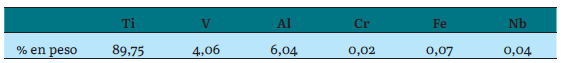 La tabla 1 muestra el resultado del análisis químico realizado al material base, el cual se obtuvo mediante el método SLM. Los valores de porcentaje en peso de los elementos que constituyen la muestra analizada se muestran en la Tabla 1, estos valores se corresponden con los rangos indicados en la norma ASTM F136.