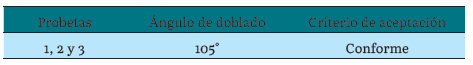 Este ensayo permite evaluar la ductilidad del material base, en este caso se determina que el material tiene la ductilidad suficiente, pues los resultados fueron conformes.