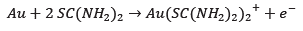La tiourea muestra altas velocidades de disolución selectiva del Au para formar un complejo de Au (i)-tiourea (cs(NH2)2. Este complejo es soluble en agua y facilita la recuperación selectiva del metal fino, el cual, tradicionalmente, es muy difícil de recuperar. En este contexto, el control del potencial redox evita la oxidación excesiva de este reactivo [9].